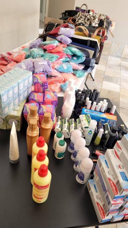Primeiro realizaram a entrega ao Projeto Semear de 42 bolsas e produtos de higiene pessoal que serão presenteados para as mamães do projeto, em comemoração ao Dia das Mães que é celebrado no próximo domingo.