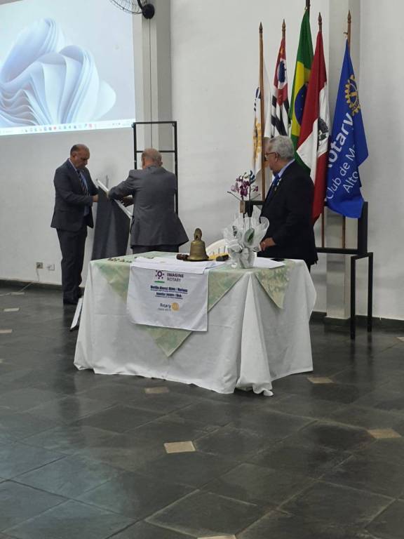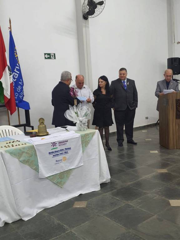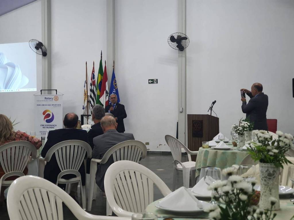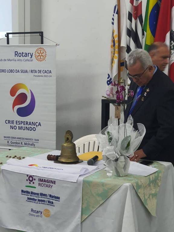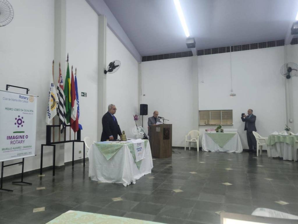 Após a exibição de um vídeo com o resumo das atividades do clube durante o exercício rotário que se encerrou, o Presidente Pedro Lobo foi empossado para o novo período de gestão pelo Governador Assistente 2023-24, Juliano Oliveira Silva, associado do Rotary Club de Marília de Dirceu, e que representou o Governador Distrital Wagner Massoca, da cidade de Tupã.