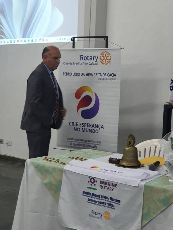 Neste sábado (08/07), o empresário industrial Pedro Lobo da Silva tomou posse da Presidência do Conselho Diretor do Rotary Club de Marília Alto Cafezal, para o exercício rotário 2023/2024. Como já vinha exercendo o cargo nos últimos 6 meses, a cerimônia de posse foi simplificada, sem a tradicional transmissão do cargo entre presidente que saiu e o entrante.
