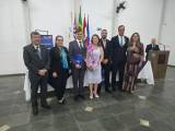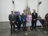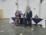 O Governador Marco Antônio e sua esposa Regina receberam uma lembrança do clube, entregue pelo Presidente Laércio e esposa Maricler, que foram agraciados com uma flâmula do Distrito Rotário 4510.