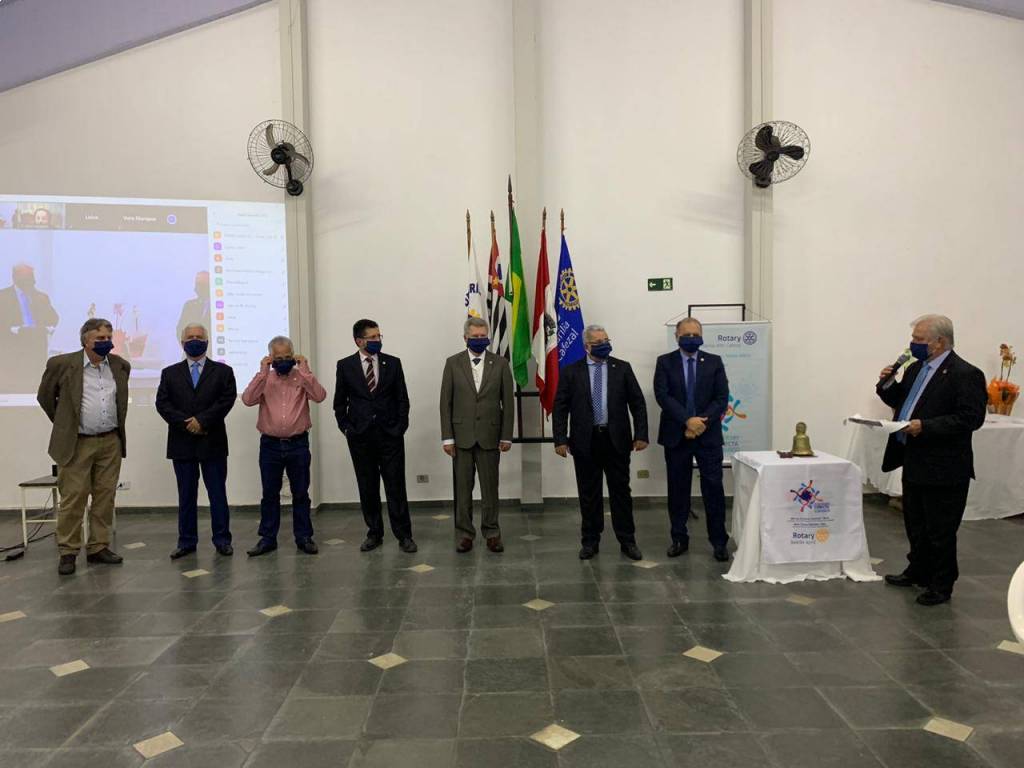 Tendo presentes apenas os dois casais que trocavam a Presidência e alguns associados do Conselho Diretor, o evento foi transmitido simultaneamente pela internet, através de reunião virtual pela plataforma Zoom, com a participação de autoridades rotárias, rotarianos de outros clubes, associados e cônjuges que não puderam estarpresentes, marcando assim um novo modo de relacionamento no Rotary.
